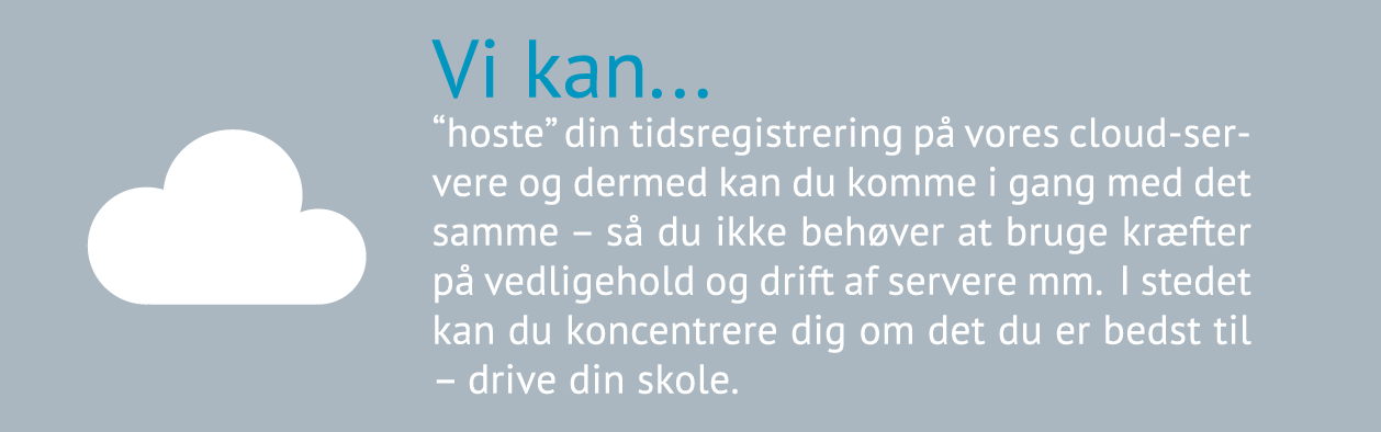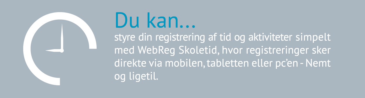 | Vi er så sikre på at i bliver begejstret for WebReg Skoletid og derfor tilbyder vi en gratis test periode på 30 dage, således at I kan gennemteste systemet på en gruppe af medarbejdere, inden at I tager den endelige beslutning. |